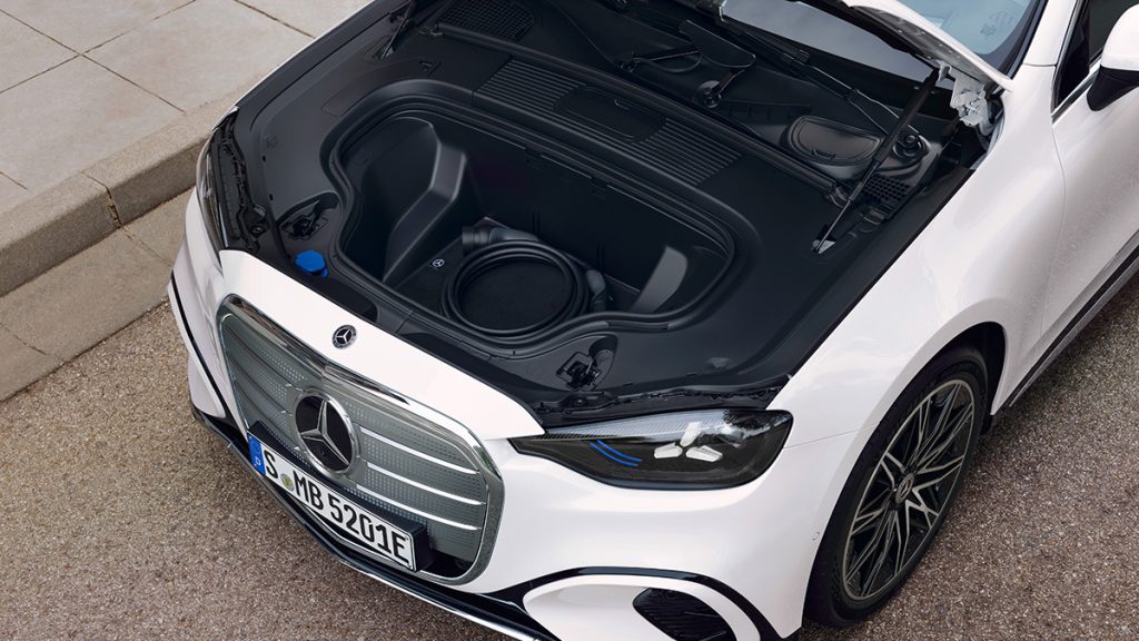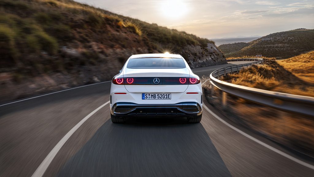 Technical improvements include rear-axle steering that enables up to 4.5 degrees of steering in the opposite direction at low speeds to increase agility. At higher speeds, stability is improved as the rear wheels steer up to 2.5 degrees in the same direction as the front wheels at speeds of 70 km/h and above. A new Airmatic air suspension with intelligent suspension control keeps the vehicle as low as possible for efficiency and comfort, using Google Maps data to predict road undulations.