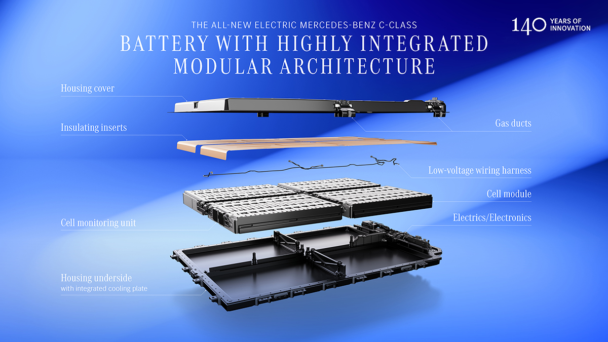 Built on the MB.EA platform following the Mercedes-Benz GLC electric, the new Mercedes-Benz C-Class electric features an 800-volt electrical architecture, allowing DC charging of up to 330 kW at selected charging stations. An optional DC converter enables the use of 400-volt charging stations. Mercedes-Benz claims the electric compact sedan can regain up to 325 km of range in just 10 minutes. According to Mercedes-Benz, dual-motor AWD models use front drive motors that disengage when demand is low, cutting energy losses by as much as 90%.